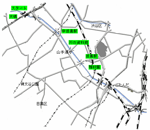 目黒川〜大橋〜目黒〜品川(8km:2時間)地図
