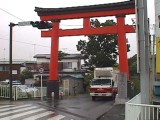 道路右側に迫力の社があったので歩道橋を渡り覗いてみた。