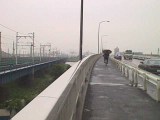 完全装備の旅人も足の方が濡れてきた。馬入橋の手前で靴下を取り替えるのに丁度良い雨避けトンネルがあったので行ってみたが、